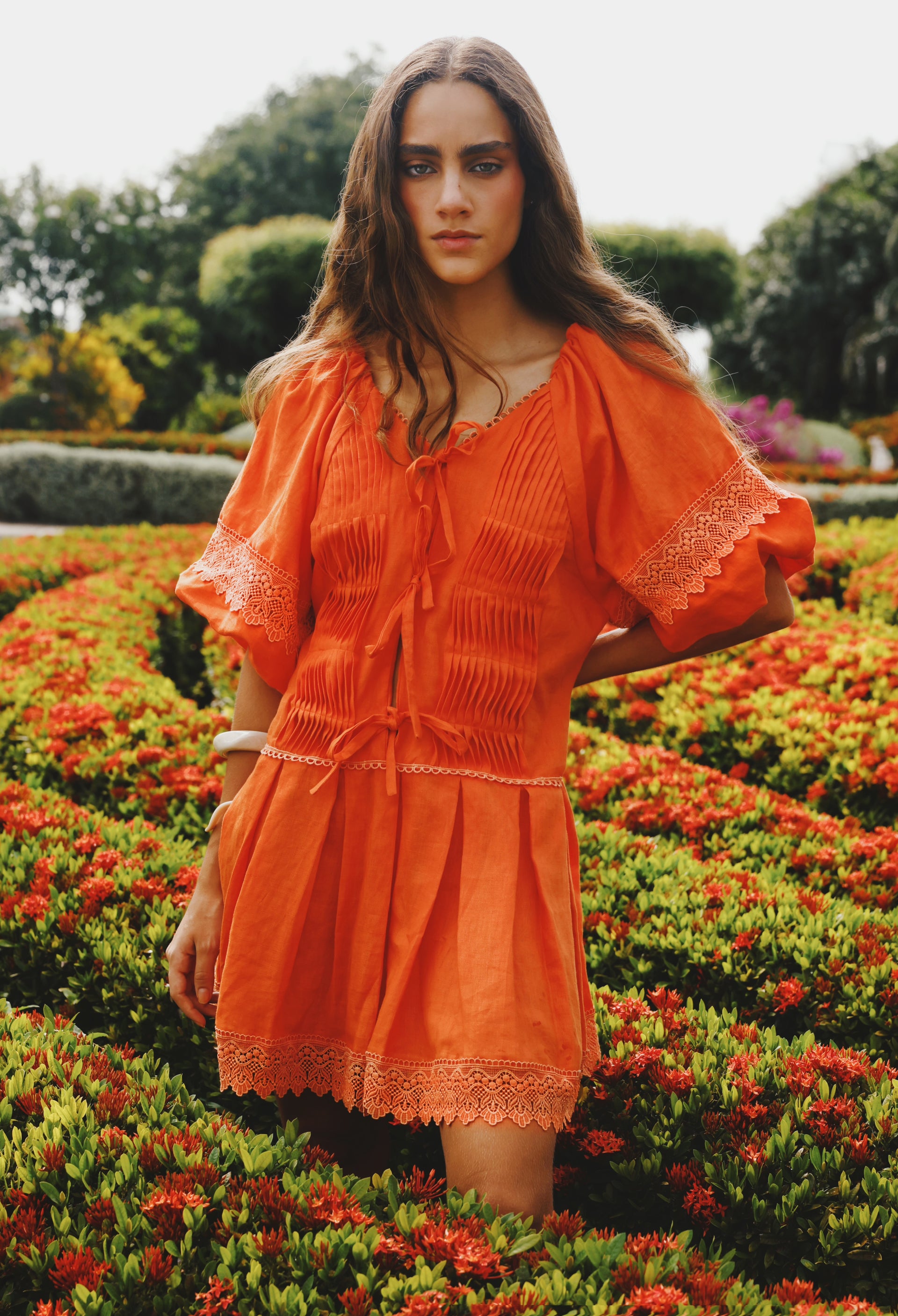 Cada pieza de esta colección es un tributo a lo que permanece oculto, a los amores que no siempre se ven, pero que marcan nuestra historia. Tonos rosa, azul y naranja, texturas, bordados y formas inspiradas en un amor no vivido, en lo cotidiano y en esas emociones que florecen en la discreción, encajes que rinden tributo a nuestro ADN esta colección te invita a vestir lo que sentimos, más allá de lo que mostramos.