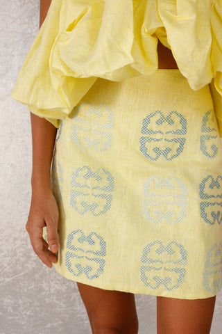 Falda y top en lino 100% detalles en falda de bordado técnica punto en cruz.
